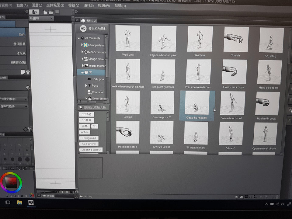 3d in clip studio paint after having the model of man or woman fixed, go to the tab entire body and choose the pose you want to use, take it and drag it by releasing it on the model of the work area. When throwing a pose material from the material palette onto the canvas. I try to use the existing 3d models, but i can not change the gender, so i only use the male model.. If you want to get a female model from the beginning